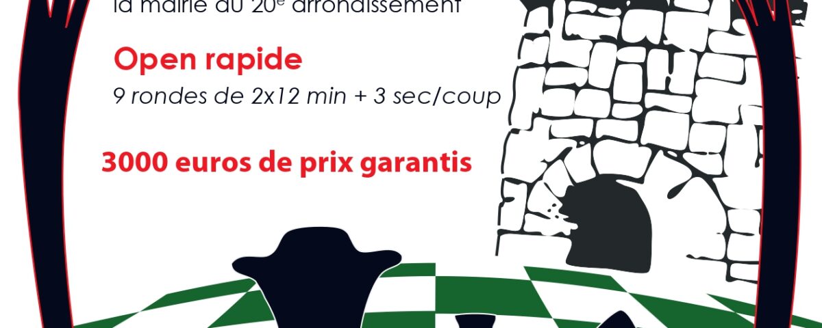 Samedi 4 octobre – – 1ère ronde à 10h – 9 rondes de 12 min + 3 sec / coup – 3000 € de prix – Excellentes conditions de jeu – Tournoi limité à 260 joueurs.